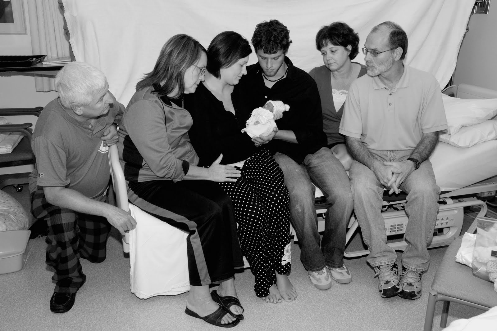 Luckily, my sister had the presence of mind to grab my camera and start snapping pictures. Those candid first shots are the best pictures we have of Kinley. Her body failed quickly and even by that evening when the photographer arrived, she looked much different, much worse!Through the day, our family and friends filtered in, saying their hello's and goodbye's. We had a steady stream of visitors in and out of the room and Kinley was rarely put down at all. We introduced Kinley to grandparenst, aunts, uncles, and cousins. We cried tears with friends who had already been in our shoes.